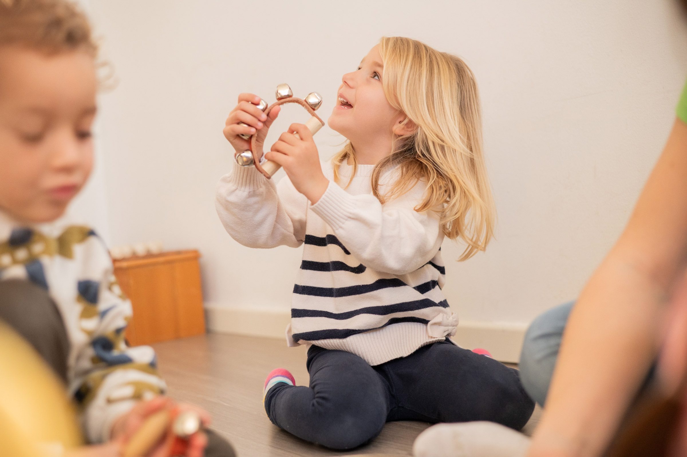 Siguiendo las metodologías musicales activas más influyentes del momento, entendiendo el juego como una oportunidad de aprendizaje y basándonos en los principios de la neuroeducación y la disciplina positiva, planteamos grupos con sesiones semanales para bebés de 9-36 meses y niños/as de 3-9 años basadas en nuestro método educativo. A lo largo de las sesiones: