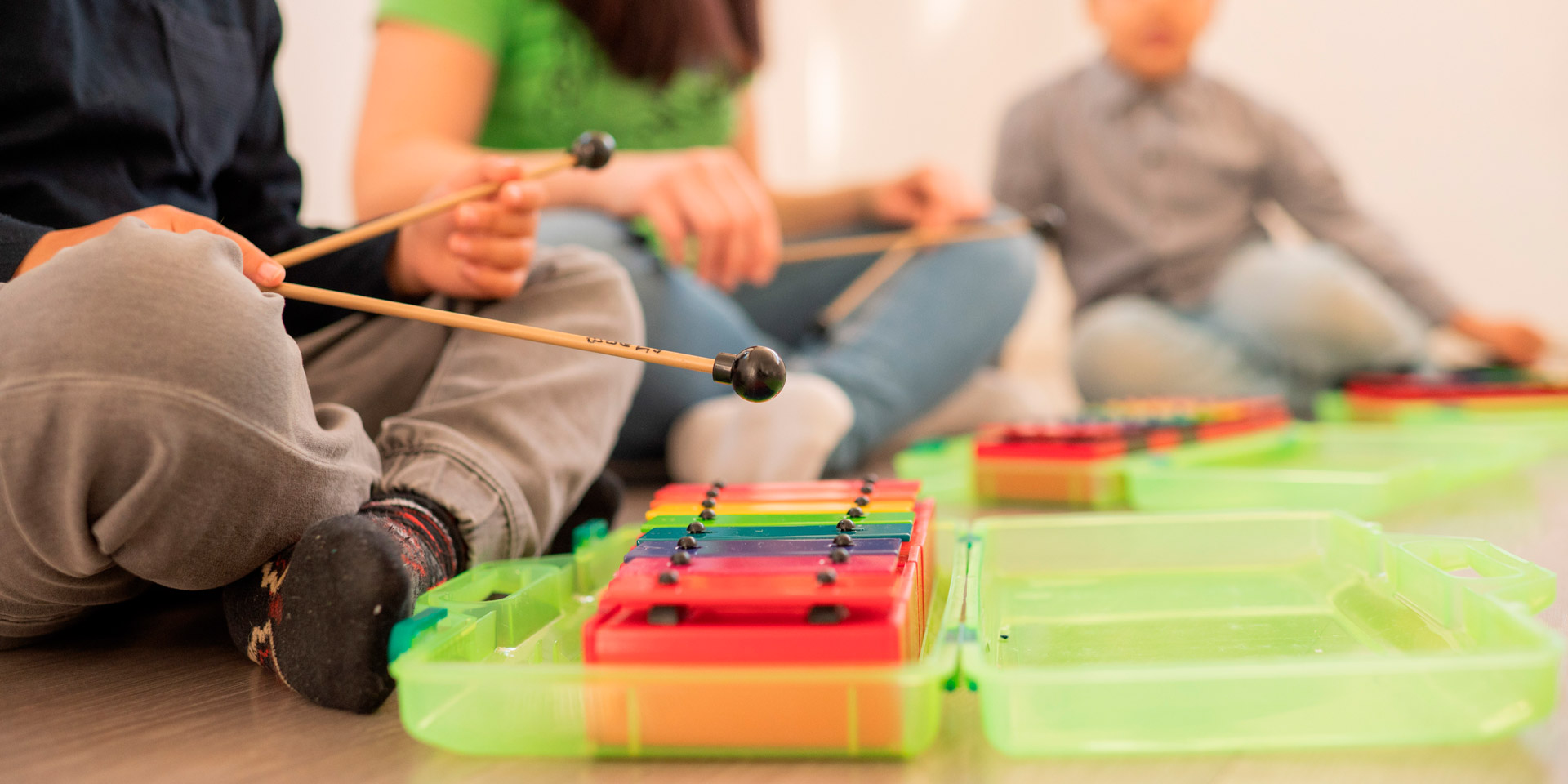 Empezaremos a tomar conciencia progresivamente de los parámetros que definen la música y su interpretación. Conoceremos las primeras figuras rítmicas y comenzaremos a distinguir su duración, crearemos nuestras propias partituras y nos familiarizaremos con la música formal propiamente dicha, avanzando en el desarrollo auditivo, vocal y expresivo. Además, a partir del segundo trimestre cada niño/a contará con un xilófono con el que aprenderemos a interpretar pequeñas melodías e improvisaremos tonal y rítmicamente con ayuda de este instrumento.